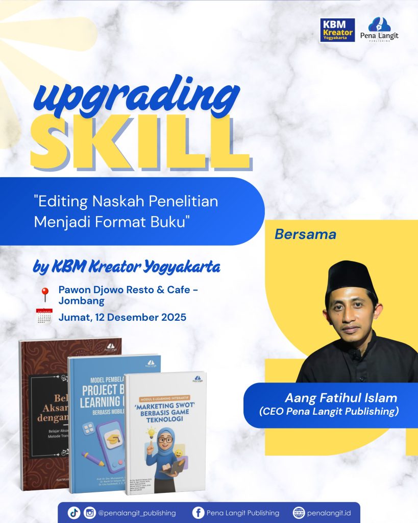 Dalam meningkatkan skill editing naskah penelitian menjadi format buku, KBM Kreator Yogyakarta undang Aang Fatihul Islam menjadi Narasumbernya.